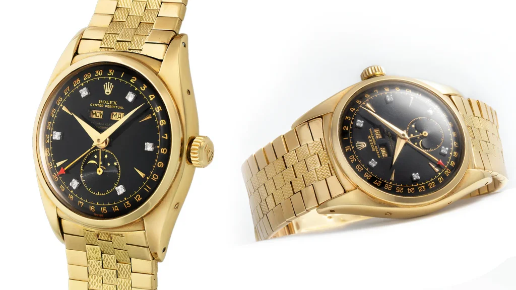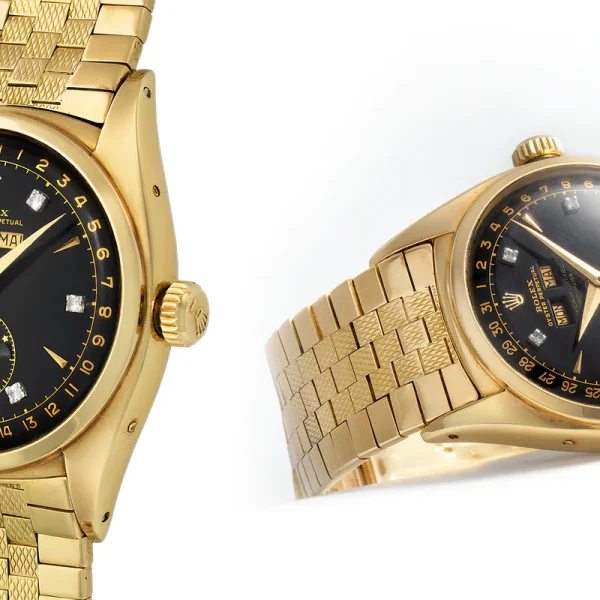 A rare gold Rolex 6062 watch has sold for £5 million at auction. The black dial watch with diamond hour markers is one of...