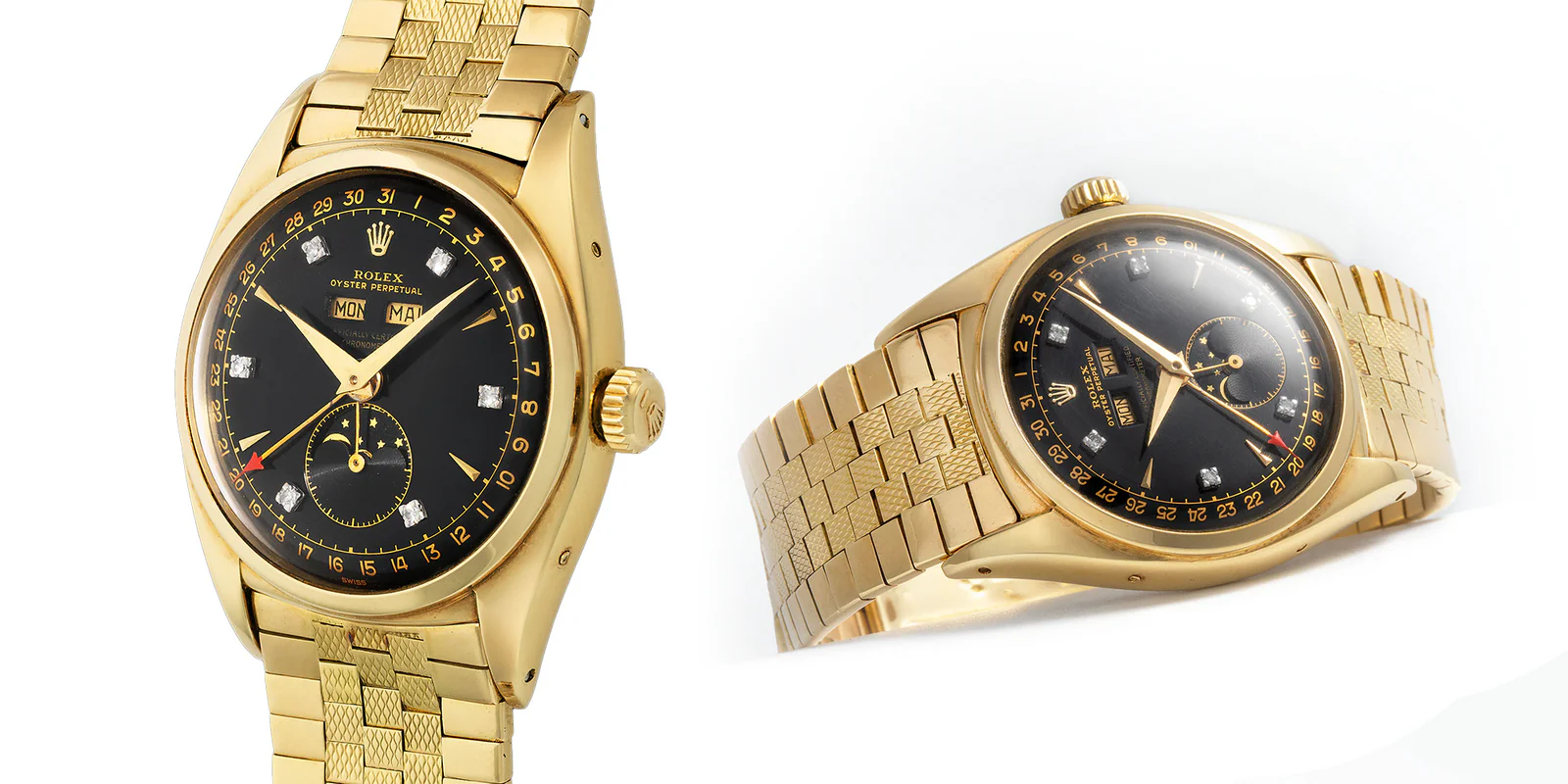 The black dial watch with diamond hour markers is one of the most expensive Rolex watches ever sold.